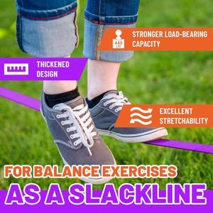 The Complete Ninja Slackline Kit by Trailblaze offers a 60-foot long polyester slackline designed for kids and adults alike, making it a versatile choice for family outdoor fun. Its length and sturdy ratchet tensioning system provide a strong, adjustable setup suitable for beginners through advanced users. The slackline's width of about 2 inches makes it fairly stable for kids learning balance, while the included wider tree protectors help safeguard trees and add a safety layer for the user.