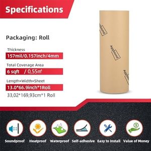 The KILMAT 80 mil 36 sqft Car Sound Deadening Mat is a highly efficient product for those seeking to reduce noise and improve insulation in their vehicles. With an 80 mil thickness, it promises to deliver enhanced sound insulation, as thicker materials generally offer better performance. The product is made of butyl and aluminum, ensuring durability and effective soundproofing. One of the key strengths is its self-adhesive nature, making it user-friendly and suitable for DIY installations. The special embossing on the foil helps users ensure proper installation, which is a thoughtful feature for non-professionals.